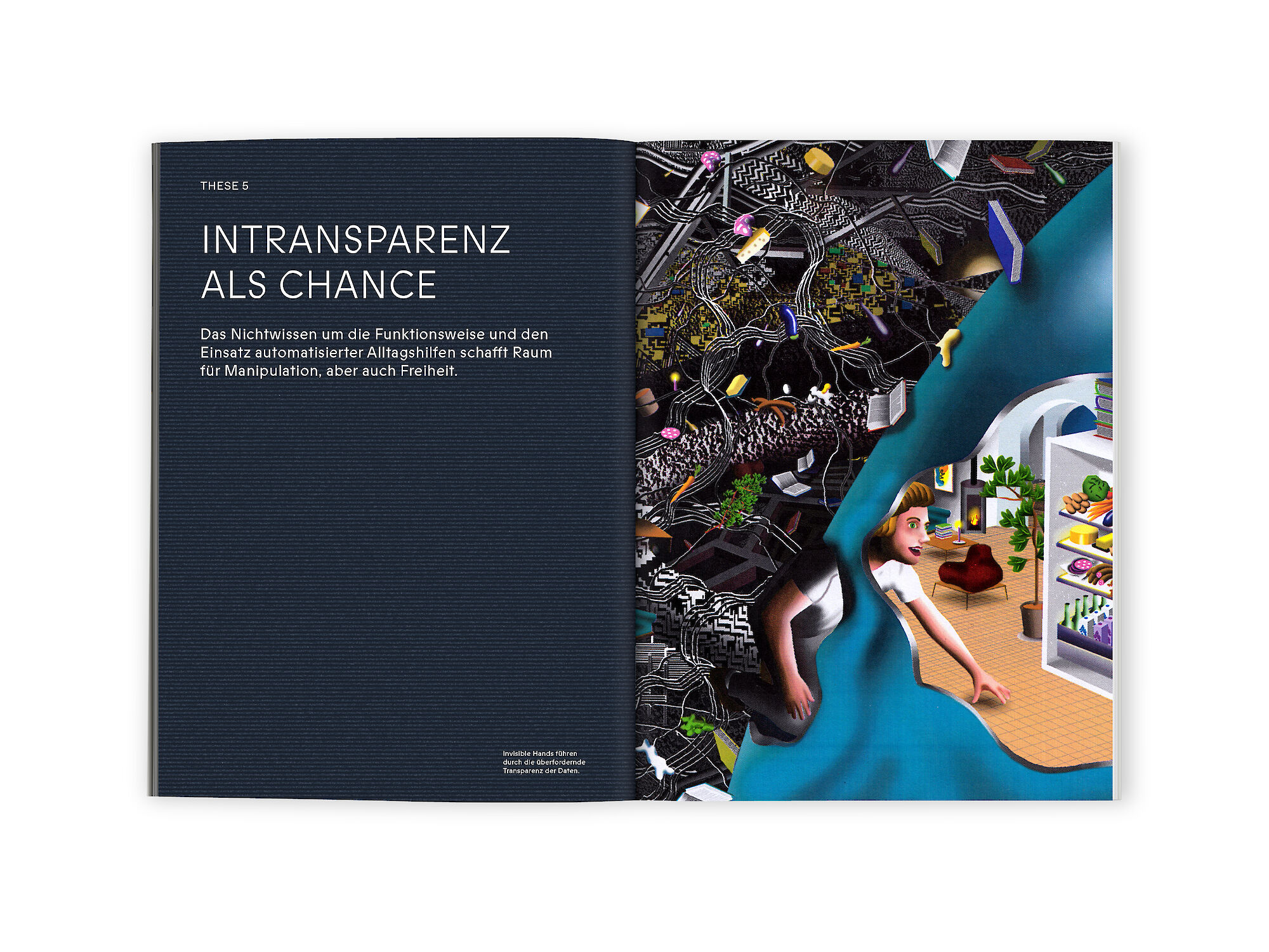 The next focus of digital transformation is on optimizing people. Intelligent assistance systems analyze our behavior and help us make data-based and thus seemingly better decisions. Algorithms are the INVISIBLE HANDS of the 21st century: they protect and guide us, but are often non-transparent in their actions. They call human intuition and self-determination into question.