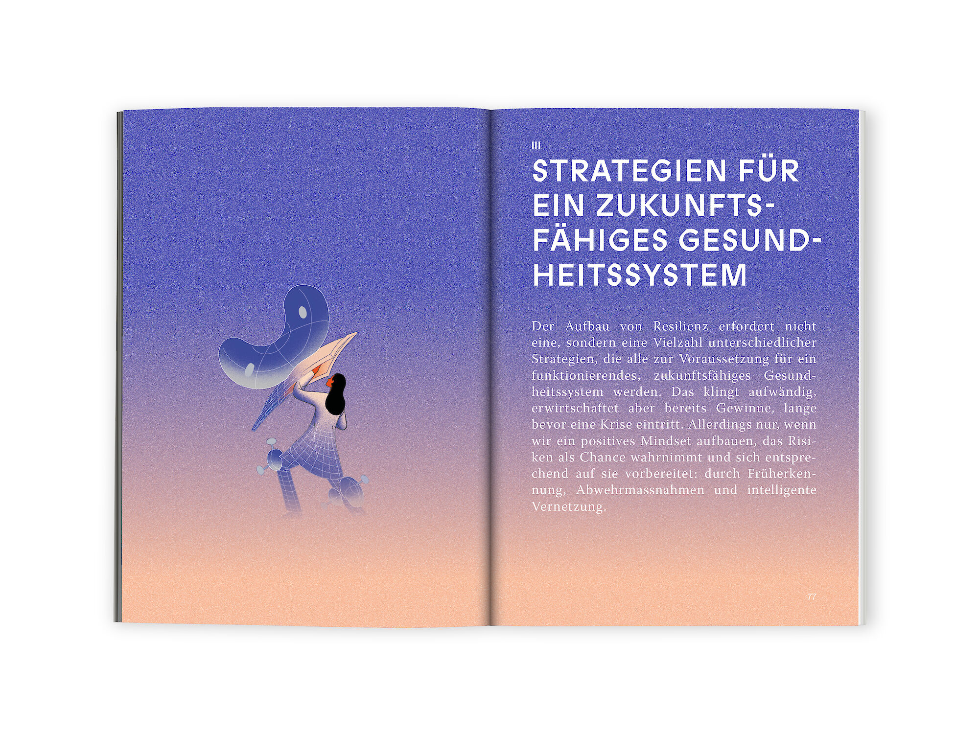 Why a resilient health system needs early detection and smart networking. In this publication, the focus is not on individuals, but on a complex system: the healthcare system. The 4 theses, strikingly illustrated, lead through the chapters.